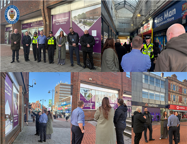 Walsall Neighbourhood officers patrol with Walsall Council and specialist Designing Out Crime Officers (DOCO) to assess how they can make the town centre environment feel safer for the community.